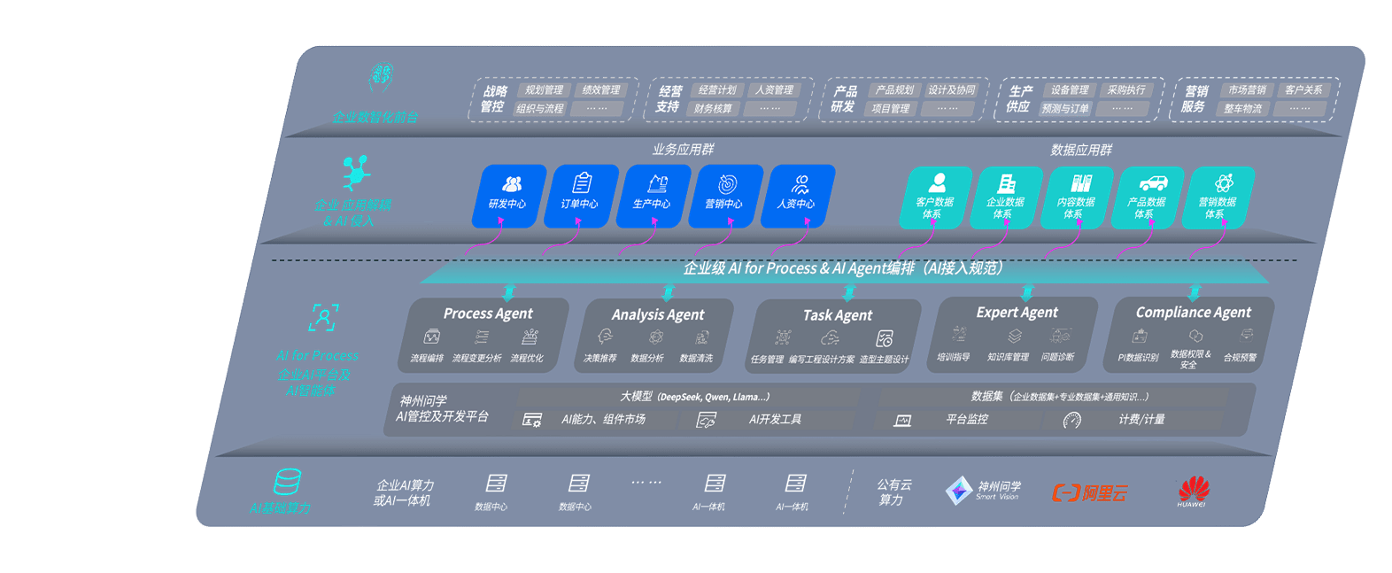 端到端的一站式AI工作空间深度融合了从企业战略规划到日常经营的全流程业务板块,,,,定向解决车企内部领域多、、、、部门多、、、链条长、、场景碎片化等难题,,支持车企快速构建以AI为核心的生产力写作体系,,,,实现任务执行与AI能力的无缝集成与交互